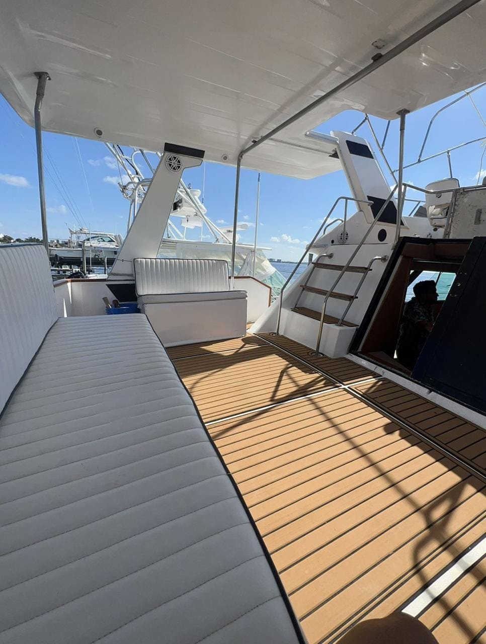 Con capacidad para hasta 25 personas, nuestro yate Sea Big Flybridge 50ft ofrece un espacio amplio y elegante para que tú y tus invitados disfruten al máximo. Equipado con una recámara, cocina completa y baño, cada detalle ha sido cuidadosamente diseñado para garantizar tu comodidad y satisfacción.
